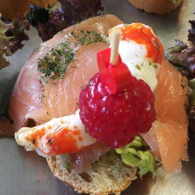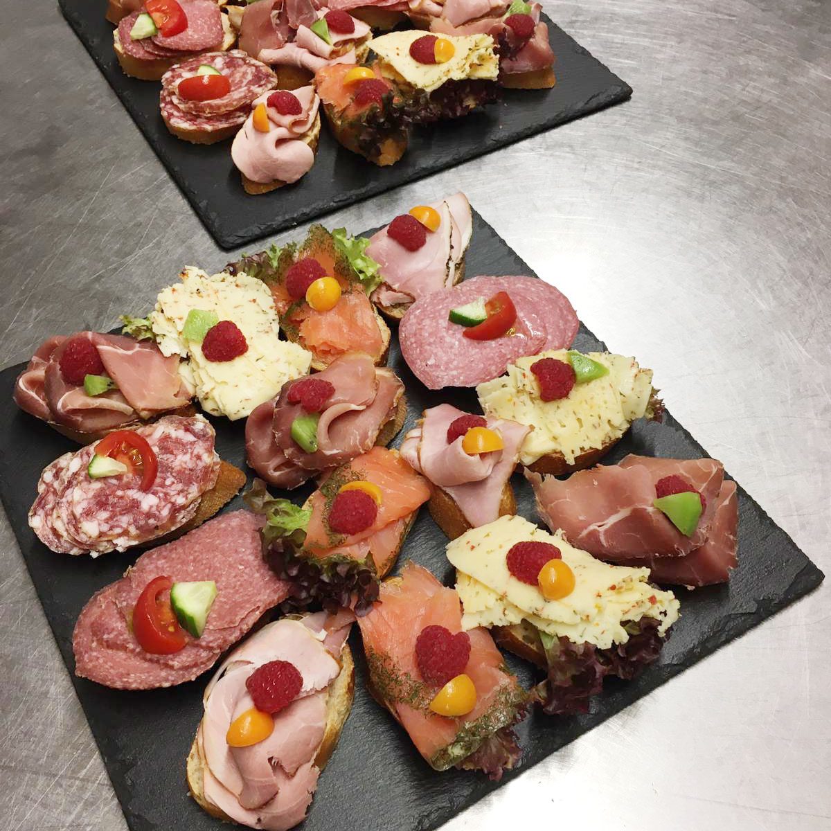 exklusiv belegte Canapés zum Beispiel mit gekochtem oder rohem Schinken,